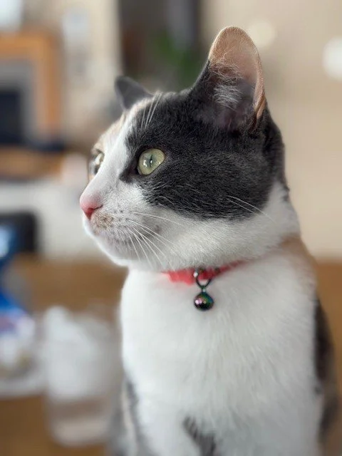 Unique personality traits: She’s very sweet. She’s independent but prefers snuggles at night. She follows us around the house, hovering nearby.