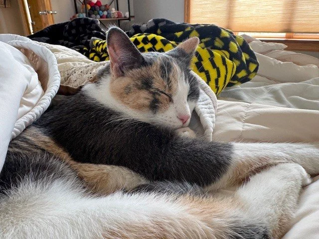 Favorite treats and/or toys: She doesn’t respond to store bought cat treats of any kind (that we have tried.) She loves cooked chicken.