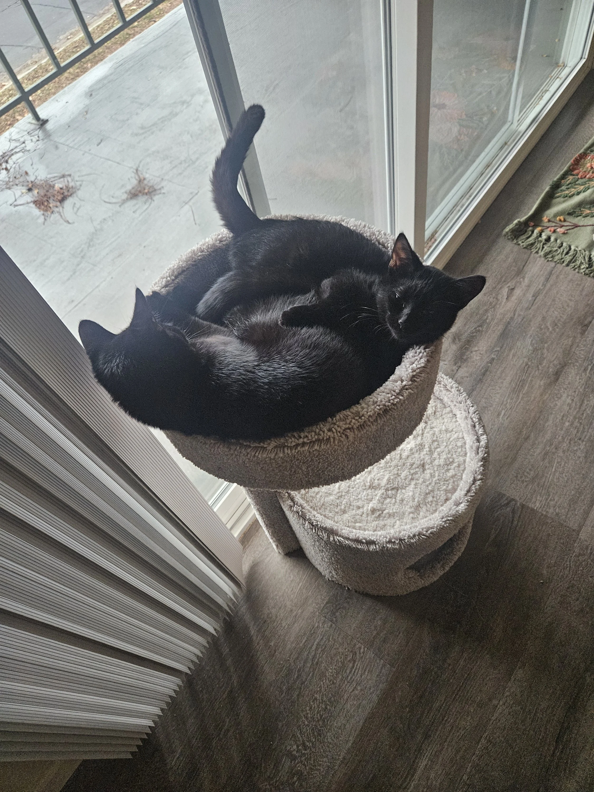 Favorite treats and/or toys: Mochi loves tuna, playing with pom poms, and loves sleeping on top of her cat tree. Lorenzo is the least picky eater and is almost gauranteed to love any snacks you give him. His favorite toys are smaller stuffed toys, especially when catnip is involved