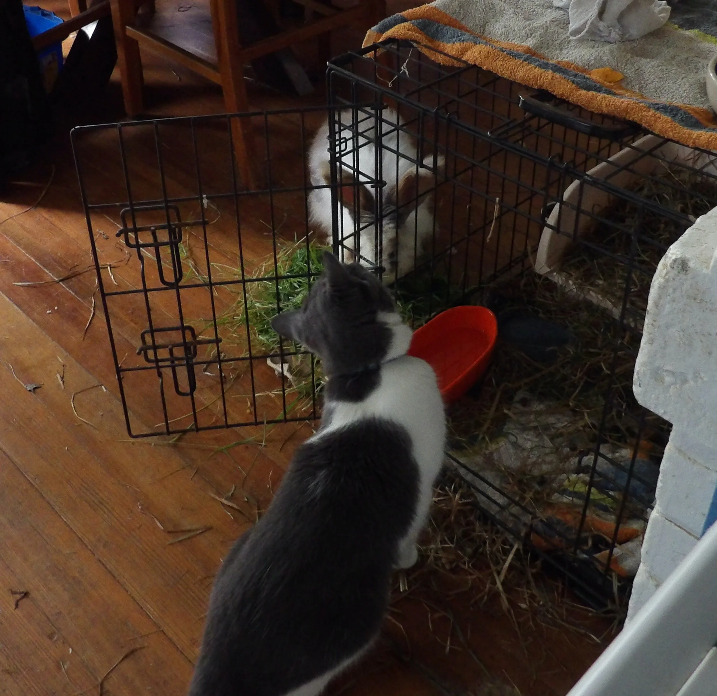 Experience and how well do they interact with dogs: She grew up with a dog & seems fine with our medium sized dog (cattle dog).