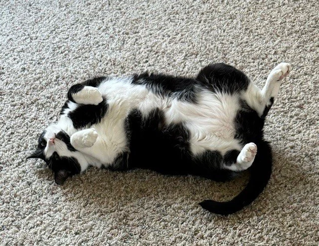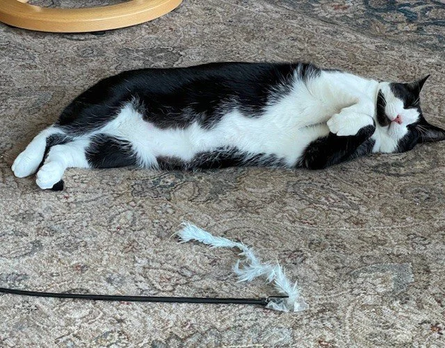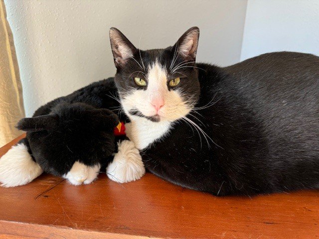 Experience with and how well do they interact with cats: He likes our other cat and they sleep together.