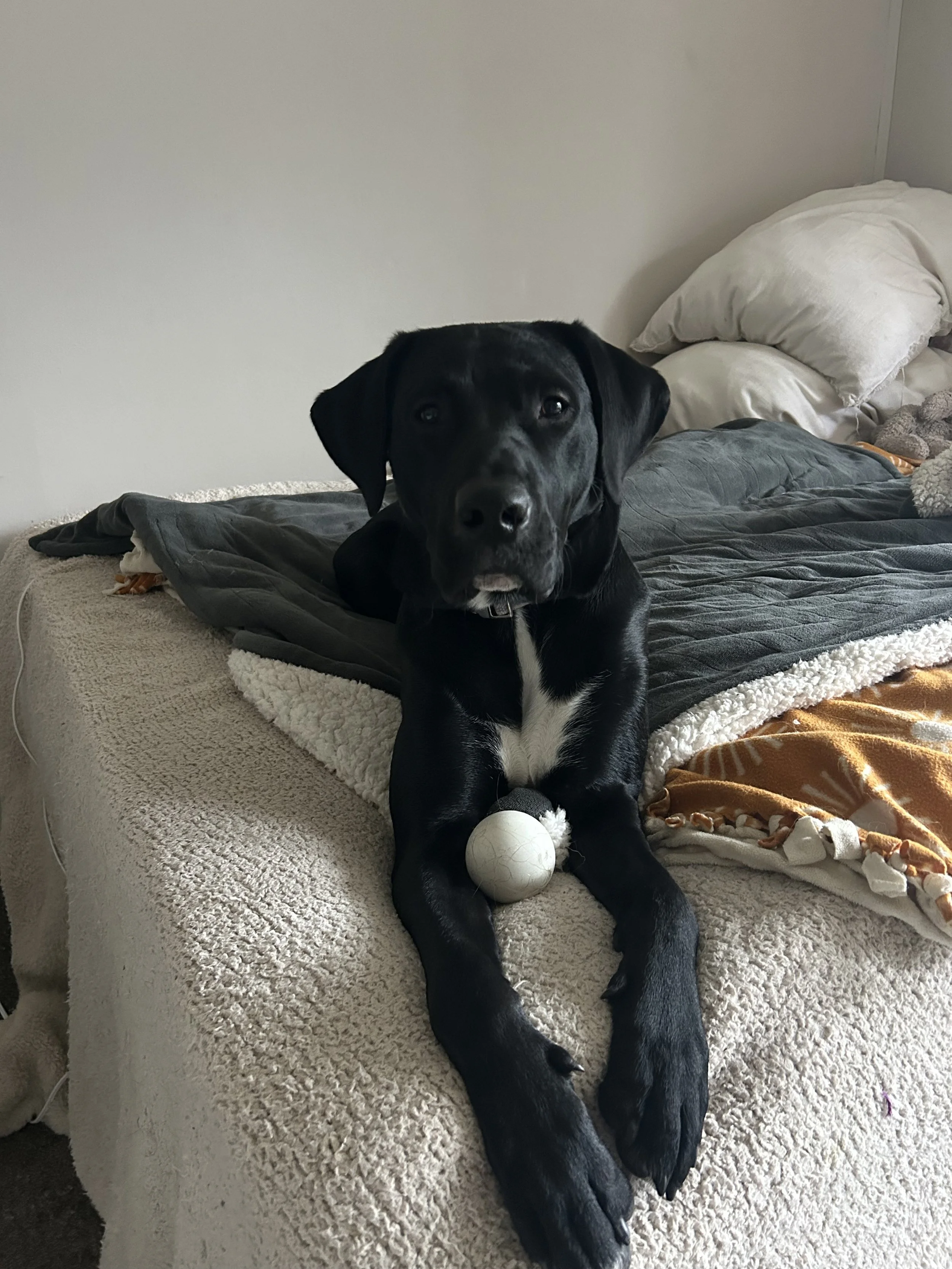 Favorite activities: He loves to play fetch and keep away. He will toss the ball back to you and bring toys up to you to try and have me take it and play.